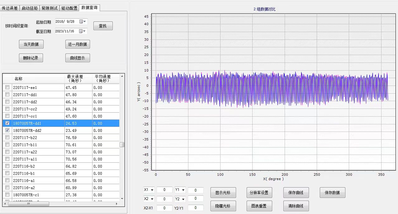 測試分為空載和帶載測試,測試時轉(zhuǎn)速和載荷可在額定范圍內(nèi)自由設置,可獨立輸出誤差曲線報告。